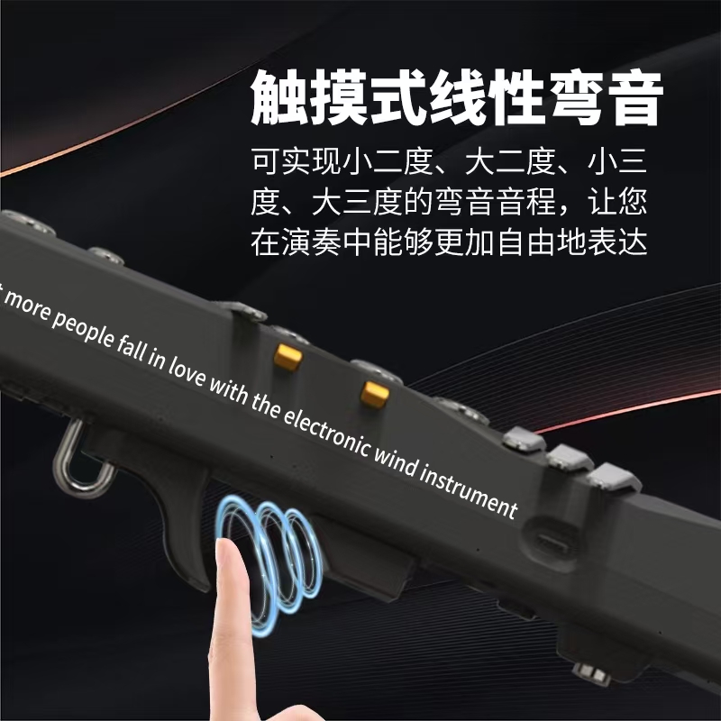 。电吹管内部装有传感器,能够将吹气力度、速度和吹气口的位置等信息转换为电信号,然后通过计算机技术进行处理和合成,最终生成各种乐器的声音。