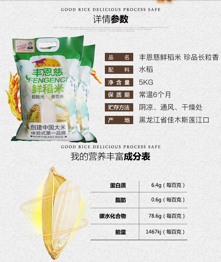 丰恩慈鲜稻米 5kg/袋 珍品长粒稻花香米 东北黑龙江大米